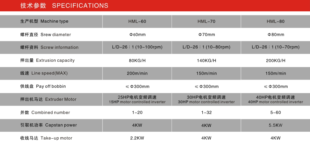 机头采用免调自定机头,配备专用蓄线架,引进台湾技术、结合多年的生产制造经验、经改良后,提升了钱材押出线速,解决了厚薄不匀,附着力差力差,张力不均,裁段后铜线内缩等问题,断线次数及废品率显著降低等优点,为排线生产厂家首选设备。