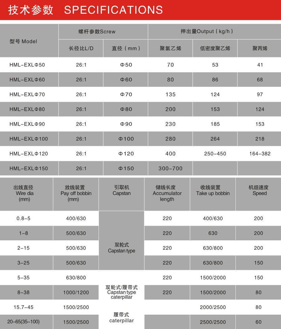 可根据不同挤出工艺要求,特设加强结构,以适用备娄低烟无卤电线的挤出。