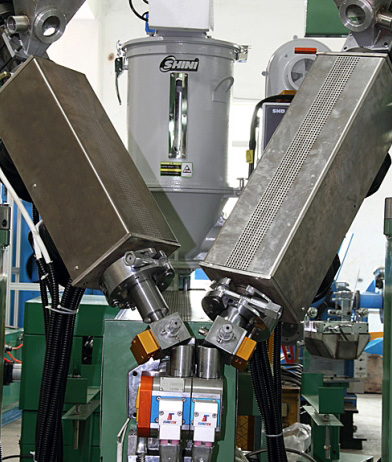 双层共挤化学发泡或实心芯线押出。