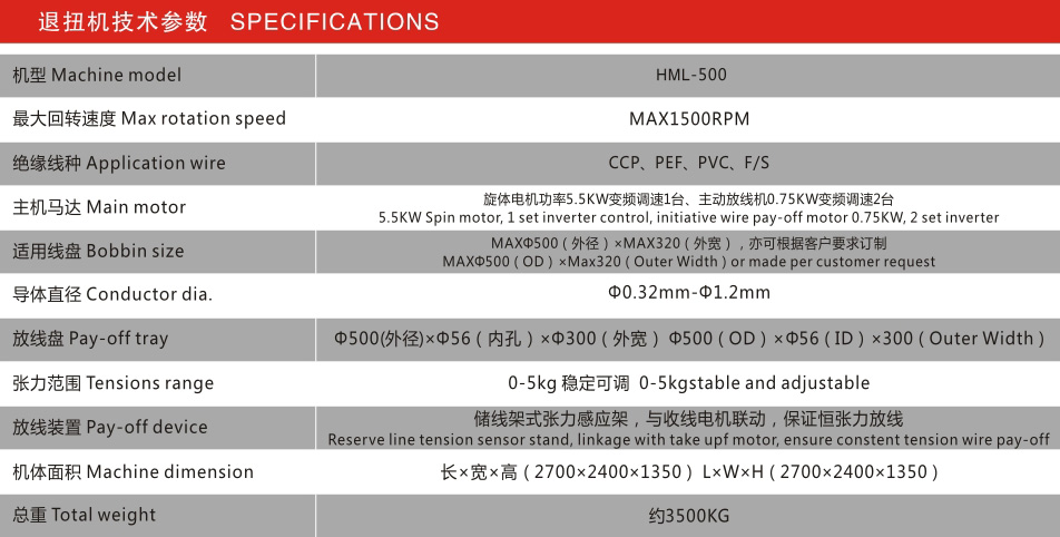 主要用于高频数据电缆LAN CABLE(CAT 6电缆)对绞之后退扭用,使对绞时,绝缘芯线位置交错均衡,克服对