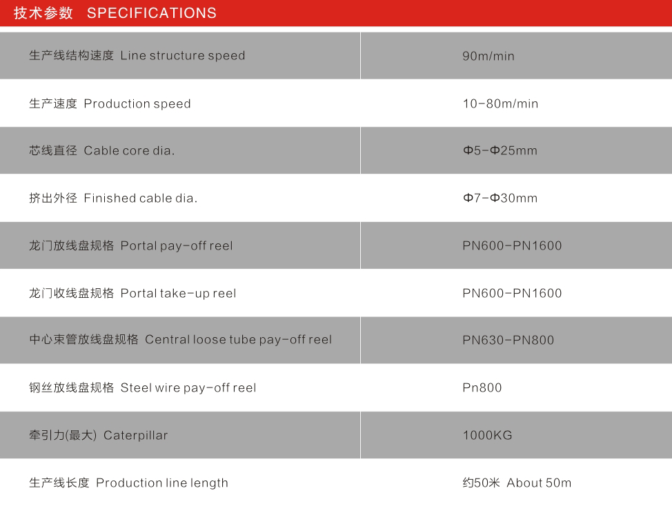 用于12芯紧包光纤的绞台挤出,也可用于多芯分支缆的外护套挤出。